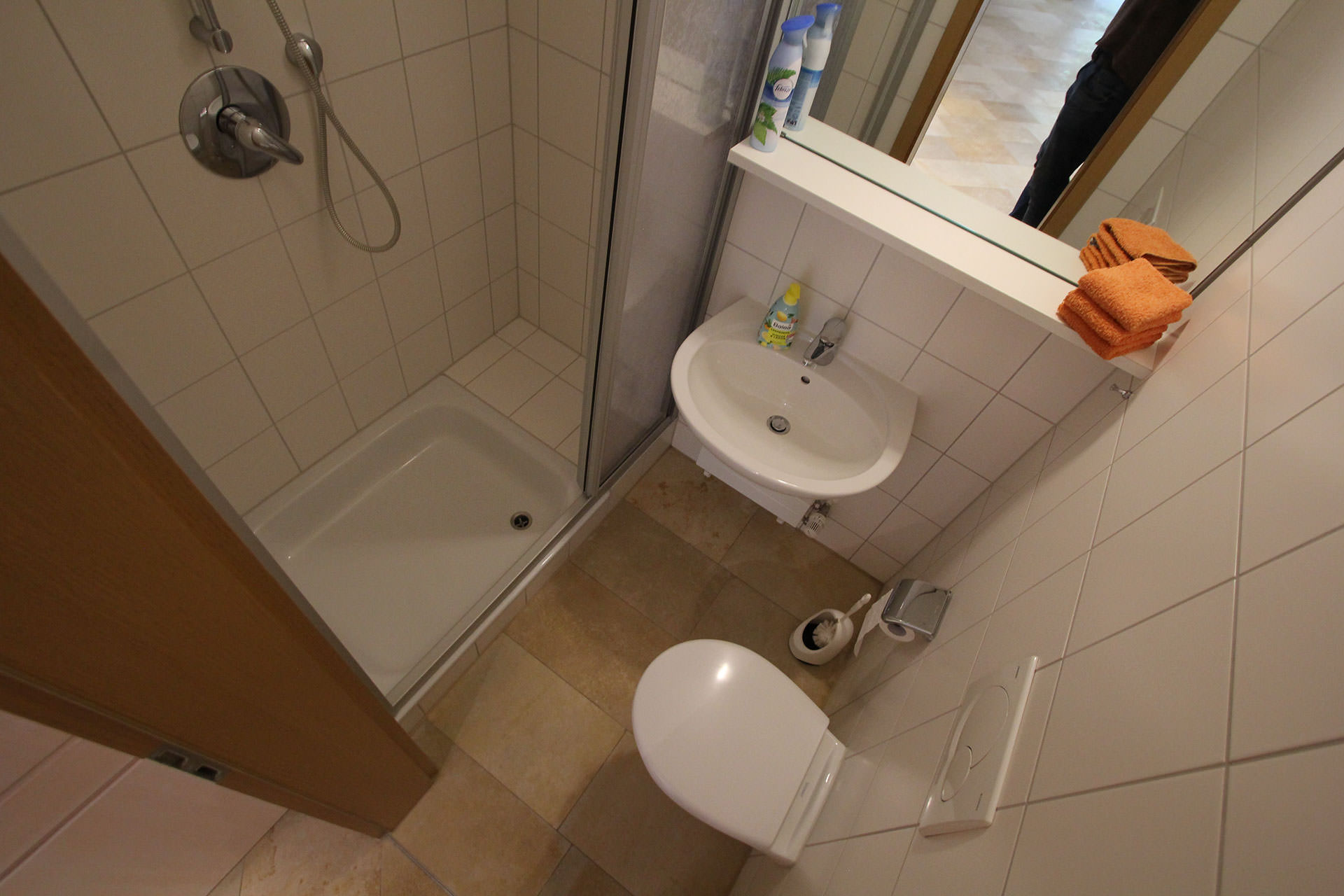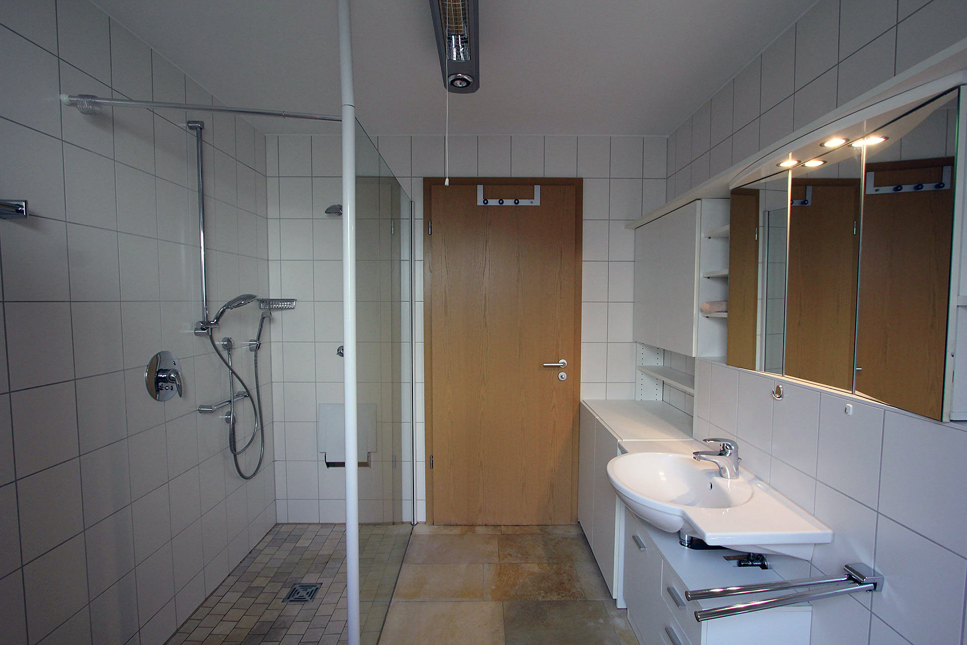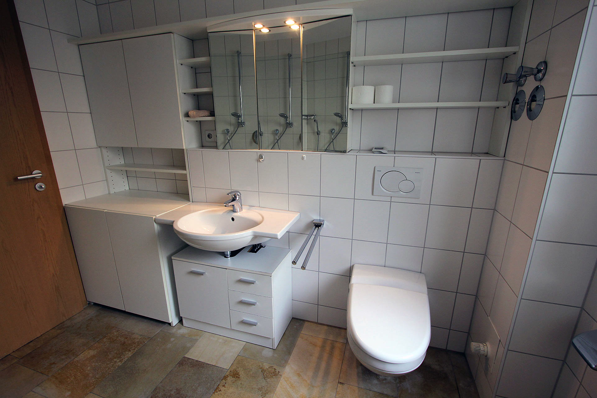 Neben Bad mit barrierefreier Dusche gibt es ein separates WC mit Bidet-Funktion sowie weiterer Dusche. Auch Waschmaschine und Trockner stehen zu Diensten.