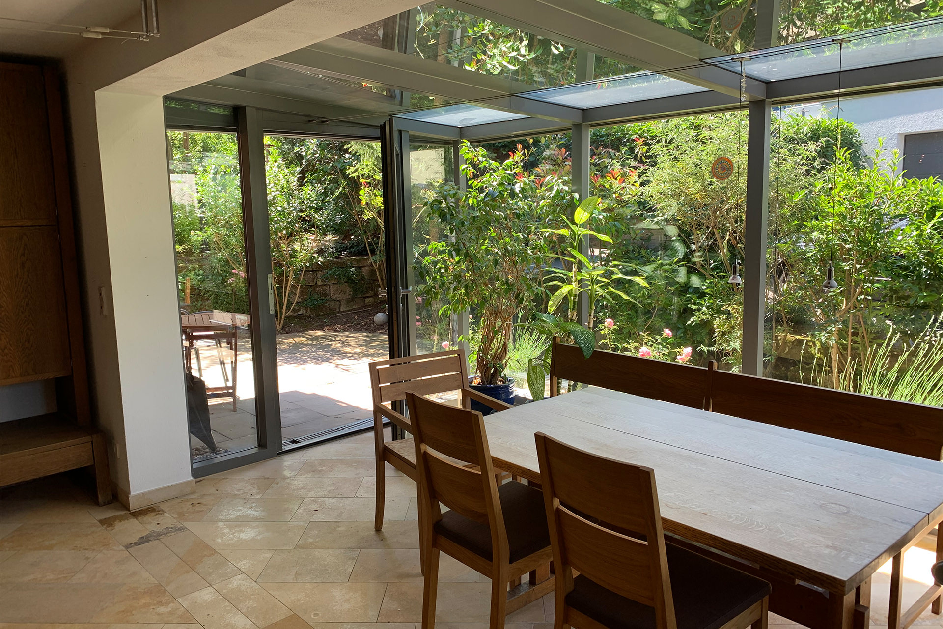 Ihre 4 ½ Vollmöblierten: Wohn-/Essbereich mit Wintergarten, großes und kleines Schlafzimmer bzw. Büro, ein weiteres Zimmer für Büro, Sauna oder Fitness.
